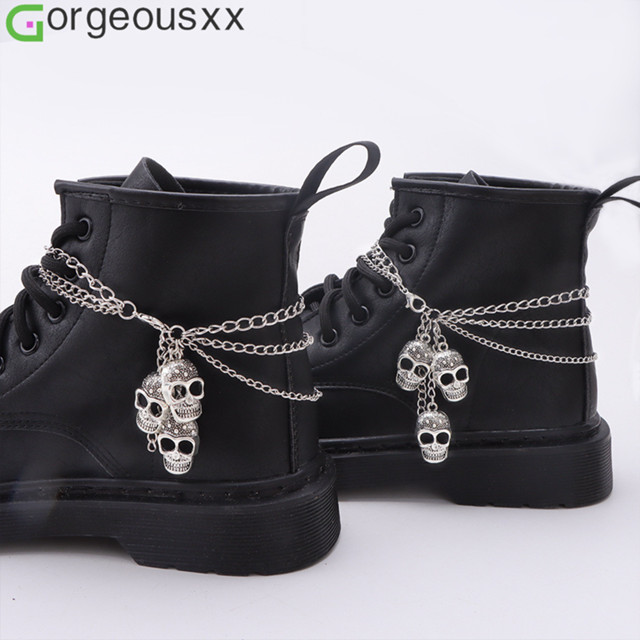 Personalidade Na Moda Crânio Gótico Oco Cabeças Em Camadas Correntes De Sapato Martin Botas Sapatos Acessórios