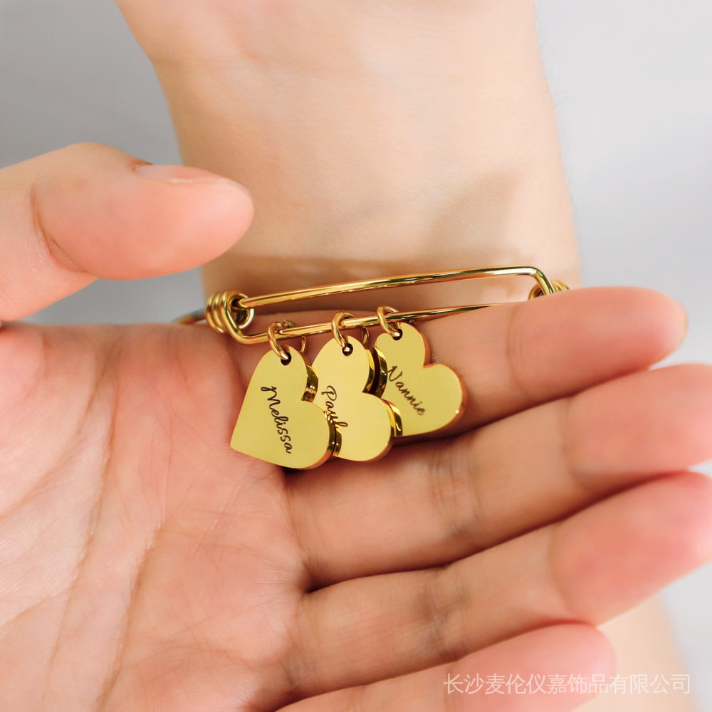 Personalizado Nome Do Coração bangle for Mothers day gift Bracelet Pulseira De Encanto Ajustável Para Mulheres