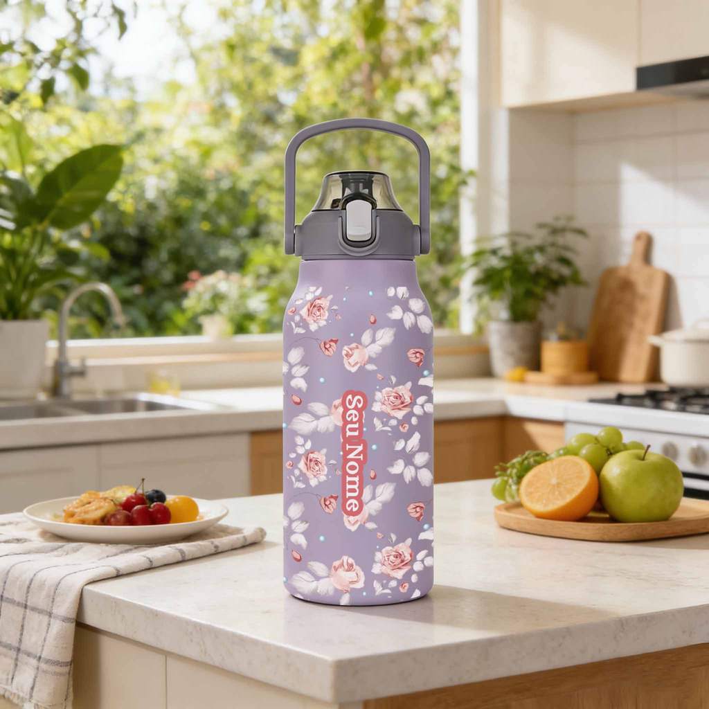 Personalizar Garrafa Térmica Inox 1700ML A Vácuo Rosa Delicada Estampa Flores Para Escritório