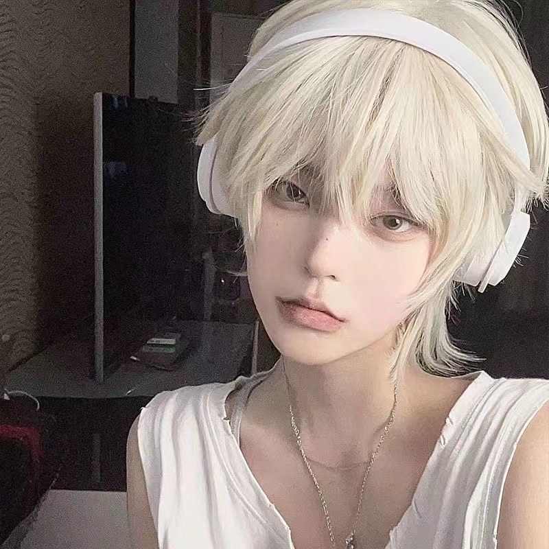Peruca Curta Masculina Coreana-Fofa Natural Para Cosplay E Festas