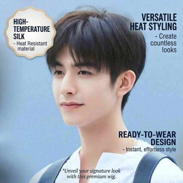 Peruca Curta Natural Masculina Estilo Coreano Com Franja Na Moda Fofa Pré-Todos Os Dias Casual