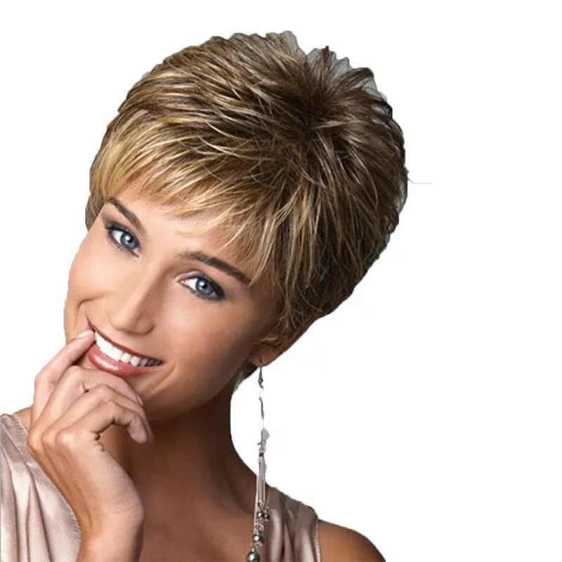 Peruca Feminina Cabelo Curto Encaracolado Senhora Fofo natural Africano Europeu E Americano Moda Penteado