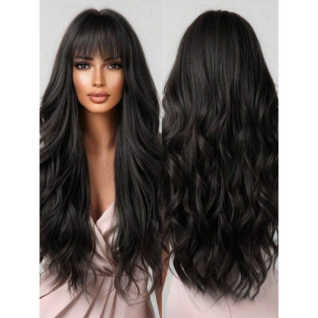 Peruca Lace Wig Longa Ondulado Com Franja Bio Fibra 60cm 250g Top Hair RALE-1#