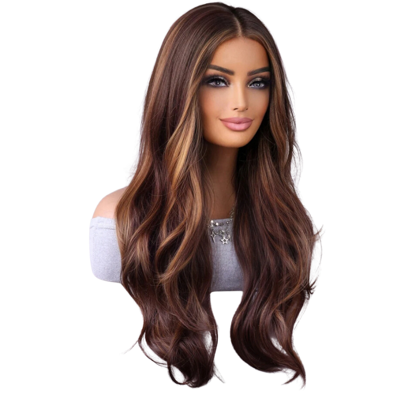 Peruca Ondulada Organica Premium Sem Franja 70cm Morena Iluminada