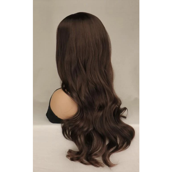 Peruca Premium Ondulada Castanho Escuro Longa Sem Franja Idêntica ao Cabelo Humano - Fibra Luxo