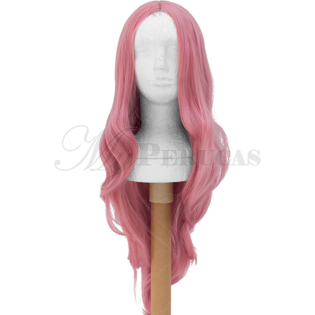 Peruca Rosa Milkshake Leve Ondulada 75cm Longa Sem e com Franja Cosplay Wig bio Orgânica