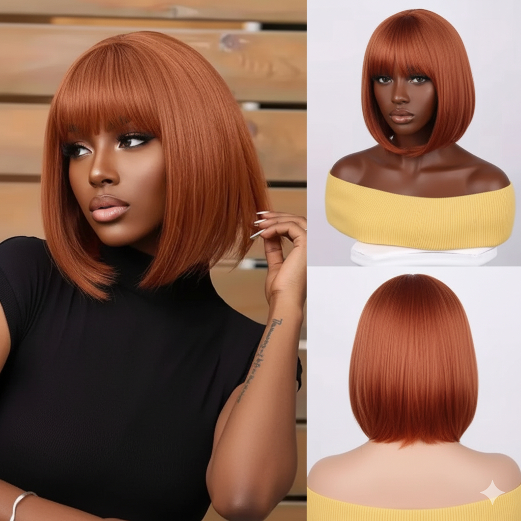 Peruca Wig Curta Com franja Orgânica 35 Cm Linda para o Dia a Dia + Wig Cap