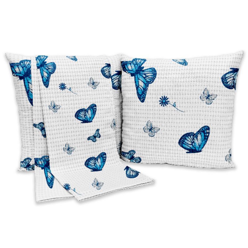 Peseira Para Cama Kit 3 Peças King 2,55m + Almofadas Estampada 40cm x 40cm Tecido Piquet Toque Macio