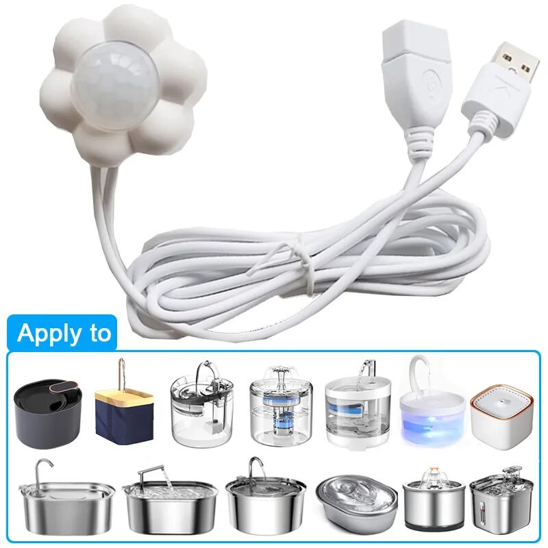 Pet Water Dispenser automático com Sensor de Movimento, Fonte Universal Filtro Infravermelho, USB Detector Alimentado, Home Dog and Cat Acessórios