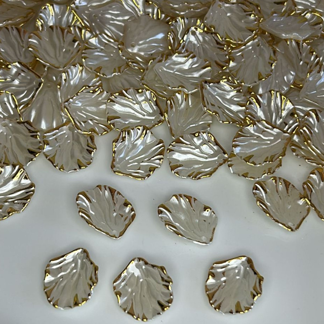 Pétala com friso branco/dourado ideal para customização de colares, brincos, chaveiros e artesanato em geral Ficha técnica: Material: plástico Quantidade: 50 e 100 peças Furo:1,2mm