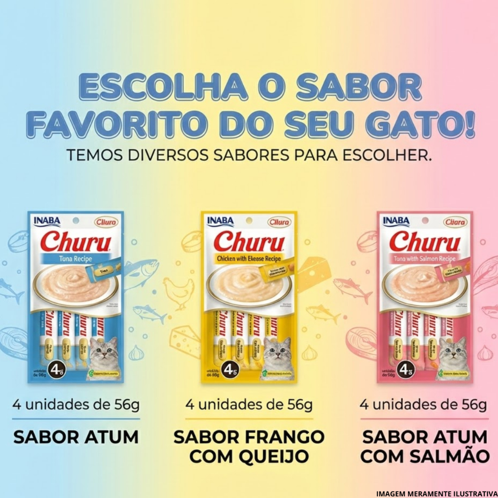 Petisco Churu Líquido Original Para Gatos Inaba 4 Unidades 56g - Sabor Irresistível - Vários Sabores
