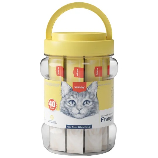 | Petisco Gatos Wanpy Creamy Frango Pote 40Un este produto | R$ 142,38 | 20% | 5.0/5 | — |