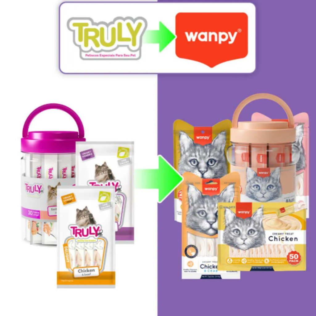 Petisco gatos Wanpy Truly Creamy Sabores Sortidos Pacote com 50 14gx50 700g ou 25 tubos 14gx25 350g