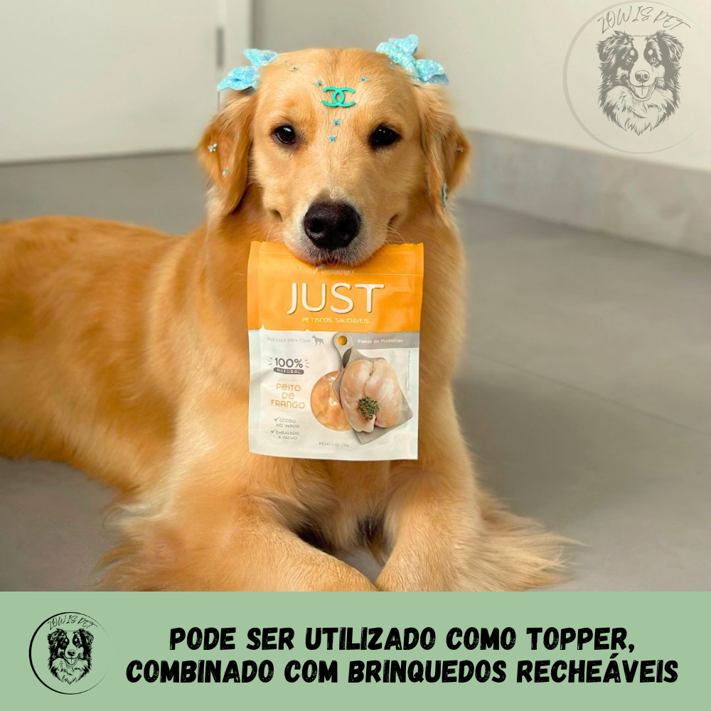 Just Petisco Para Cães e Gatos Natural Sabores: Steak de Pato 55g Steak de Pato 75g Steak de Frango 55g Steak de Frango 75g Peito de Frango 55g Peito de Frango 75g Tiras de Frango e Pato 75g Cubos de Frango 55g Cubos de Pato 55g O Petisco Just é natural e feito com frango de alta qualidade, garantindo sabor e nutrição para cães e gatos. Seu formato é prático, fácil de oferecer e perfeito para treinos, recompensas e enriquecimento ambiental. Uma opção saudável e saborosa para complementar a dieta do seu pet. 100% Natural – Sem corantes, conservantes artificiais, transgênicos, ácido cítrico ou propilenoglicol. Fonte de proteína magra – Ajuda a manter a saúde e energia do seu pet. Formato em cubos – Prático para servir e ideal para treinos e recompensas. Versátil – Pode ser usado puro ou misturado à ração. Enriquecimento ambiental – Ótimo para colocar em brinquedos e estimular o pet. Benefícios: - Construção muscular e pelos viçosos; - Rico em proteínas de alta qualidade; - Auxilia no desenvolvimento da massa muscular e confere brilho extra à pelagem; - Saúde e Bem-Estar; - Por ser uma carne magra e de fácil digestão, reduz o risco de ganho de peso indesejado e auxilia na manutenção de um corpo saudável. Indicação: - Para cães e gatos de todos os portes e idades; - Ideal como agrado, recompensa em treinos e enriquecimento ambiental. Modo de Uso: - Ofereça como petisco ou recompensa durante o adestramento; - Em atividades de enriquecimento, esconda pequenos pedaços para estimular a caça; - Ajuste a quantidade conforme porte e nível de atividade do seu pet. Cuidados: - Supervisione sempre o consumo para evitar ingestão de fragmentos grande; - Descontinue o uso se notar qualquer desconforto ou reação alérgica; - Consulte o Médico Veterinário em caso de dúvidas nutricionais. Contém: - A embalagem contém 55g ou 75g você tem a tranquilidade de oferecer um produto natural e nutritivo, que respeita a saúde e as necessidades do seu pet.