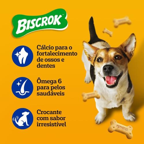 PEDIGREE® acredita que os cães alimentam o que há de melhor em nós e queremos alimentar o que há de melhor neles, traduzindo qualidade em petiscos que eles vão adorar. Os cães precisam de amor e petiscos ajudam a dizer a eles o quanto são amados por seus donos e que são parte da família. Os petiscos podem ser usados para treinar e recompensar, são perfeitos para momentos de conexão, além de poderem ajudar a manter a saúde oral do seu cão. É por isso que BISCROK oferece biscoitos crocantes em formato de ossos, enriquecidos com cálcio e ômega 6. Ideais para treinar, recompensar e mimar seu cão a qualquer hora do dia. Fortaleça o relacionamento entre você e seu cão dando-lhe o que há de melhor! Indicado para os cães das raças: Beagle,Boston Terrier,Chihuahua,Dachshund,Lhasa Apso,Lulu da Pomerânia,Maltês,Pinscher,Poodle,Pug,Shih Tzu,Yorkshire Terrier