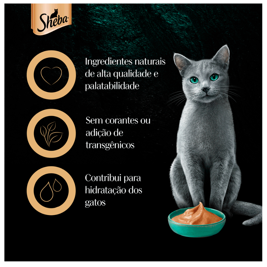 Petisco para Gatos Sheba Cremoso sabor Atum e Camarão - 4 unidades Delicioso Petisco Cremoso SHEBA Super Premium Fonte de Hidratação que ajuda na saúde do Trato Urinário Sem corantes ou adição de açúcar e transgênico Feito com Ingredientes Naturais e Baixa Caloria Dê na mão para um momento especial com seu gato