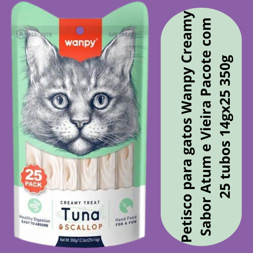 Petisco para gatos Wanpy Creamy Sabor Atum e Vieira Pacote com 25 tubos 14gx25 350g - TRULY