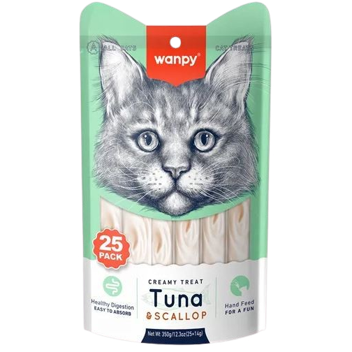 Petisco para gatos Wanpy TRULY Creamy Sabor Atum e Vieira Pacote com 25 tubos 14gx25 350g