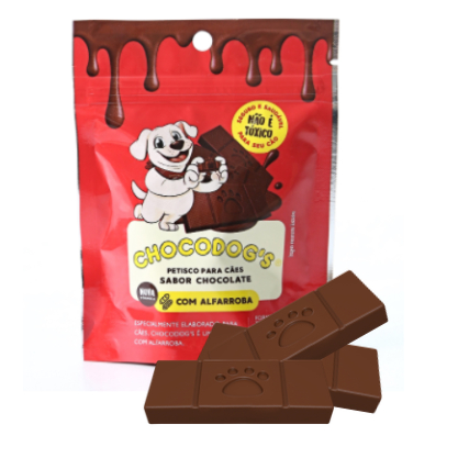 Chocodogs é um petisco para cães com aparência e sabor de chocolate, feito com alfarroba, um produto seguro e não tóxico para o seu pet. Uma alternativa mais atrativa aos petiscos tradicionais, proporcionando uma experiência diferente, saborosa e divertida para o seu cão. A linha de sachês conta com 4 formatos: * Palito; * Pastilha; * Ossinho; * Tablete Ideais para diferentes momentos, desde recompensas até demonstrações de carinho no dia a dia. Além disso, possui textura maleável, podendo ser facilmente amolecido para ajudar a esconder comprimidos, tornando a rotina mais prática para o tutor. As embalagens são coloridas, chamativas e contam com fechamento tipo ziplock, que preserva a qualidade do produto e facilita o armazenamento. Atenção: contém derivados de leite, soja e lactose. Animais com alergias ou sensibilidades devem consumir com cautela. Não contém glúten. Perfeito para recompensar, agradar e transformar momentos simples em experiências especiais com o seu pet.