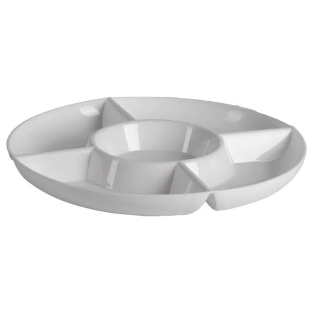Petisqueira redonda branca com 5 divisões