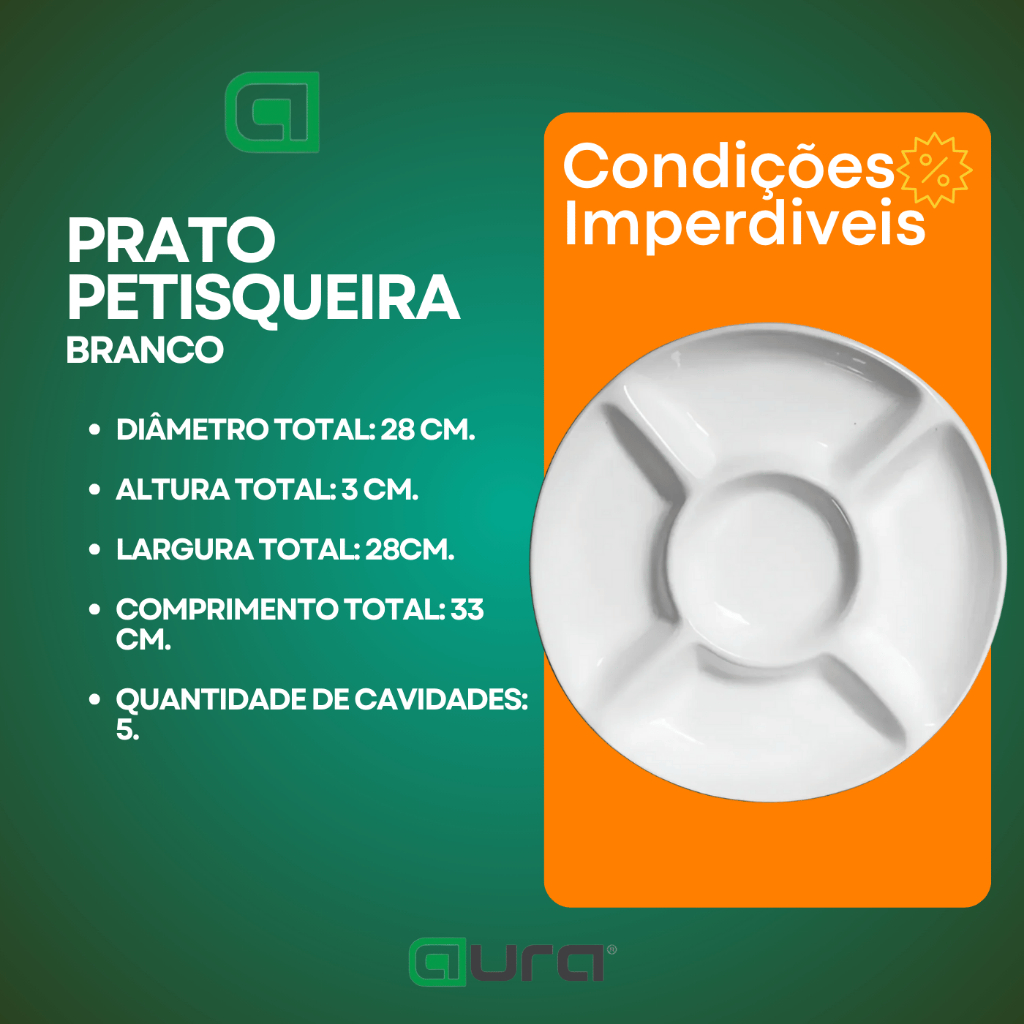 | Petisqueira redonda branca com 5 divisões este produto | R$ 39,90 | 33% | 5.0/5 | 1 |