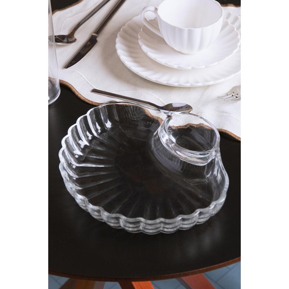 Petisqueira Shell com Divisória para Molho 21,5cm x 19,5cm A Petisqueira Shell com Divisória para Molho 21,5cm x 19,5cm x 3,5cm de Vidro - Wolff é a peça ideal para servir petiscos com estilo e praticidade. Seu formato em concha, com uma divisão especial para molhos, facilita a disposição dos alimentos, tornando qualquer ocasião mais descontraída e organizada. A Petisqueira Shell com Divisória para Molho 21,5cm x 19,5cm x 3,5cm de Vidro - Wolff é a peça ideal para servir petiscos com estilo e praticidade. Seu formato em concha, com uma divisão especial para molhos, facilita a disposição dos alimentos, tornando qualquer ocasião mais descontraída e organizada. Design funcionalA divisória para molho permite servir alimentos com acompanhamentos de forma prática, sem misturar sabores. VersatilidadeIdeal para petiscos variados, como queijos, azeitonas, frutos do mar ou frutas, com espaço dedicado para molhos, pastas ou temperos. Material durávelFeita de vidro, é resistente e fácil de limpar, além de dar um toque especial à mesa em qualquer ocasião. Utilize a petisqueira para organizar e servir seus petiscos preferidos. Após o uso, lave com água e sabão neutro, secando bem para manter o brilho do vidro. Evite choques térmicos e produtos abrasivos que possam riscar a peça. Com a Petisqueira Shell de Vidro da Wolff, você serve seus petiscos favoritos de maneira prática e charmosa, trazendo mais organização e elegância para os seus encontros! Contém: 1 Petisqueira Lava Louça: Não Microondas: Não Forno: Não Fogão: Não Freezer: Não Medidas Produto: Altura 3,50cm x Largura 19,50cm x Comprimento 21,50cm Peso: 0,64Kg Cor: Incolor Material: Vidro Lavar com detergente neutro, esponja macia e secar imediatamente.