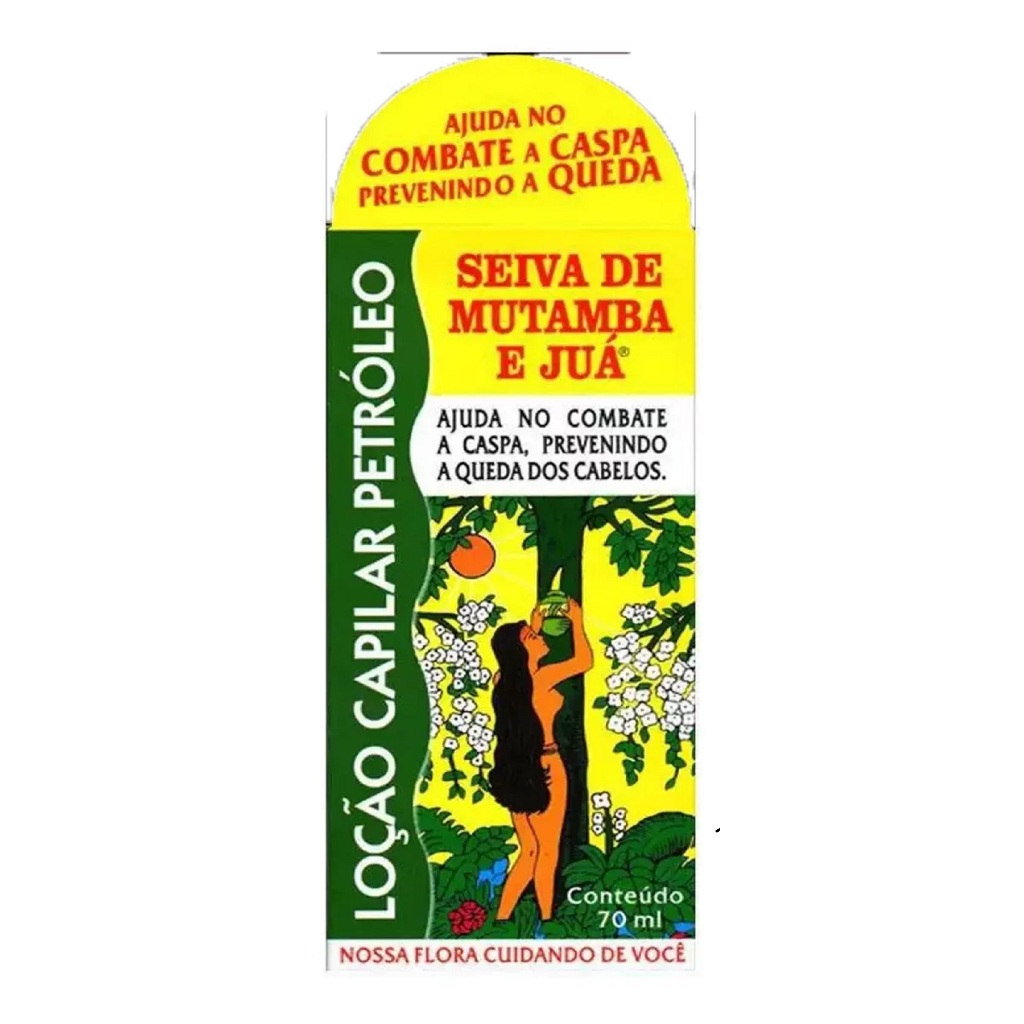 Loção Capilar Petróleo Seiva de Mutamba e Juá Combate a Caspa e a Queda dos cabelos; Tônico capilar; pode ser deixado nos cabelos dando uma leve fixação no penteado; não é loção a base de enxofre ou tintura progressiva; contém extrato de Mutamba e de Juá; não possui contra indicação de uso.