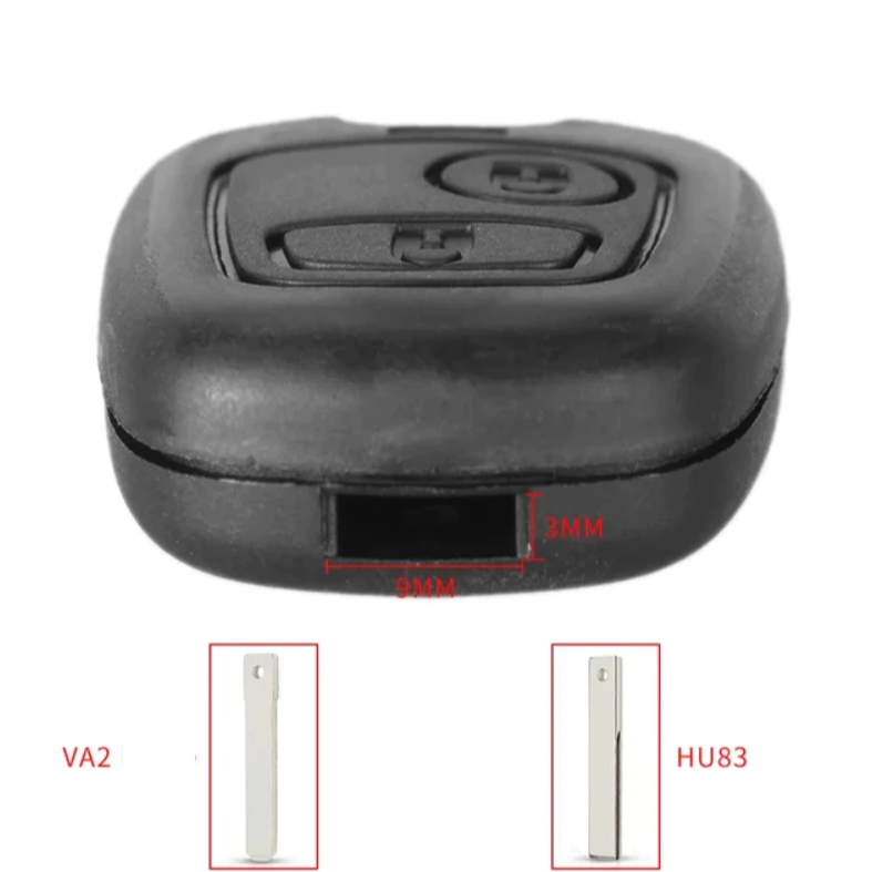 Esta carcaça da chave é uma ótima opção para substituir a carcaça danificada da sua chave original. Ela contêm a parte frontal e traseira da capa. Características: - Quantidade de botões: 2 - Emblema: Sim - Cor: Preto - Compatibilidade: Linha Peugeot 206, 207 e 306 com lâminas VA2 e HU83 Observações: - Este produto não acompanha o circuito interno (placa) e chip code. - Por favor, verifique a compatibilidade antes de efetuar a compra. - Para confirmar a compatibilidade em caso de dúvidas, chame-nos no chat