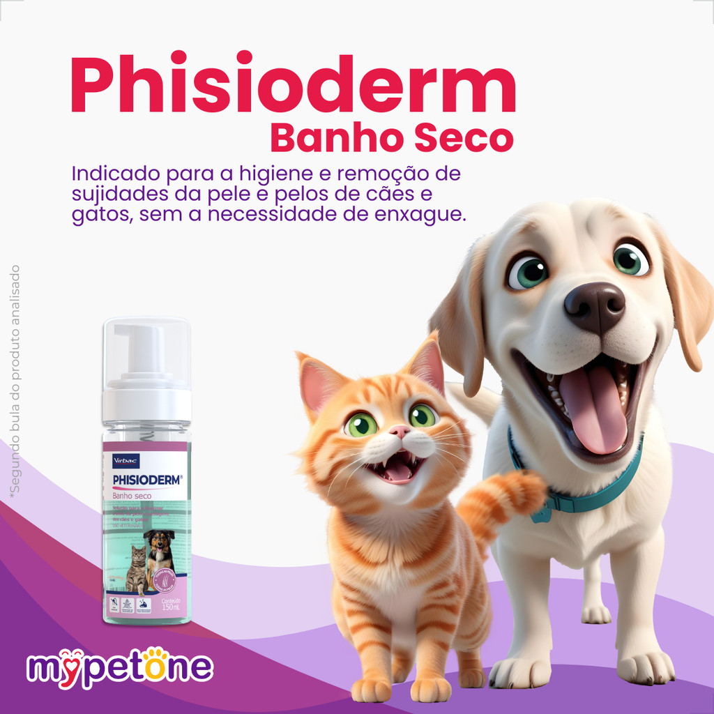 Phisioderm® Banho Seco para Cães e Gatos – 150 mL Higiene prática e rápida, sem precisar molhar seu pet! O Phisioderm® Banho Seco foi desenvolvido para facilitar a vida de quem ama cuidar dos pets, mas não quer (ou não pode) dar banho com água toda hora. Com fórmula suave e tecnologia micelar, ele limpa, hidrata e perfuma os pelos de cães e gatos sem a necessidade de enxágue. - Remove sujeiras e odores com praticidade - pH neutro e hipoalergênico – seguro até para peles sensíveis - Mantém os pelos limpos e cheirosos entre os banhos - Pode ser usado diariamente Ideal para aqueles momentos em que seu pet precisa de uma limpeza rápida ou quando o banho convencional não é uma opção. Por que escolher o Phisioderm® Banho Seco? - Tecnologia de água micelar: limpa suavemente sem agredir a pele - Extratos naturais de Ulmária e Boldo: com ação purificante e calmante - Fragrância cítrica leve que deixa seu pet cheiroso por mais tempo - Sem enxágue, sem estresse – mais conforto para você e para o seu pet Como usar? É simples e rápido! Aplique a espuma diretamente nas mãos ou em um pano limpo, espalhe no pelo do seu pet e massageie suavemente. Não precisa molhar nem enxaguar. Depois que secar, basta escovar para finalizar. Indicado para cães e gatos de todas as idades e tipos de pelagem. Composição Ácido Salicílico, Cloroxilenol, Extrato de Ulmária, Extrato de Boldo, Óleo de Rícino, Fragrância Cítrica, entre outros ingredientes cuidadosamente selecionados para promover uma limpeza segura e eficaz. Cuidados Somente para uso externo em cães e gatos. Evite contato com olhos e mucosas. Em caso de irritação, suspenda o uso e procure orientação veterinária. Conserve em local seco e fresco. Garanta já o Phisioderm® Banho Seco e tenha seu pet sempre limpo, cheiroso e feliz – sem complicação!