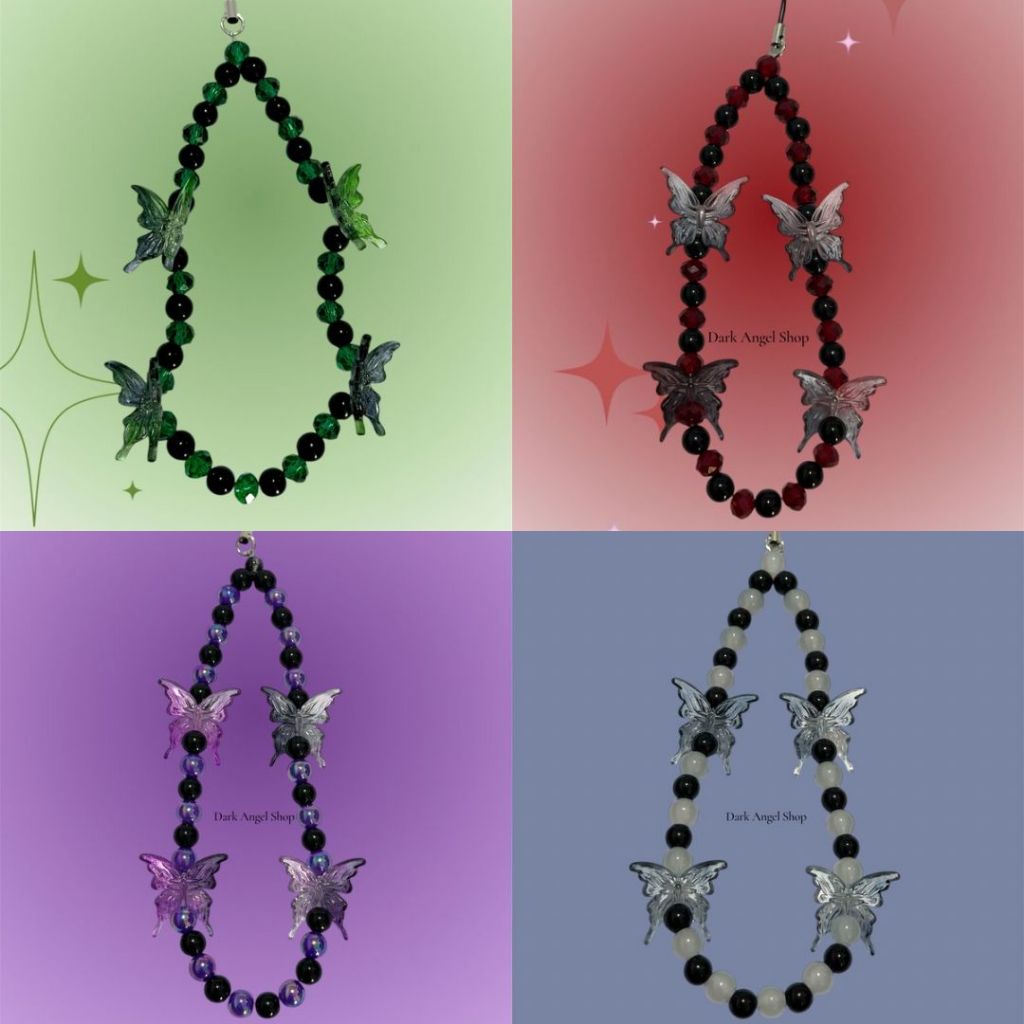 Phone Strap Borboleta - Chaveiro de Celular pingente de borboletas Dark miçanga colorida Phone Strap