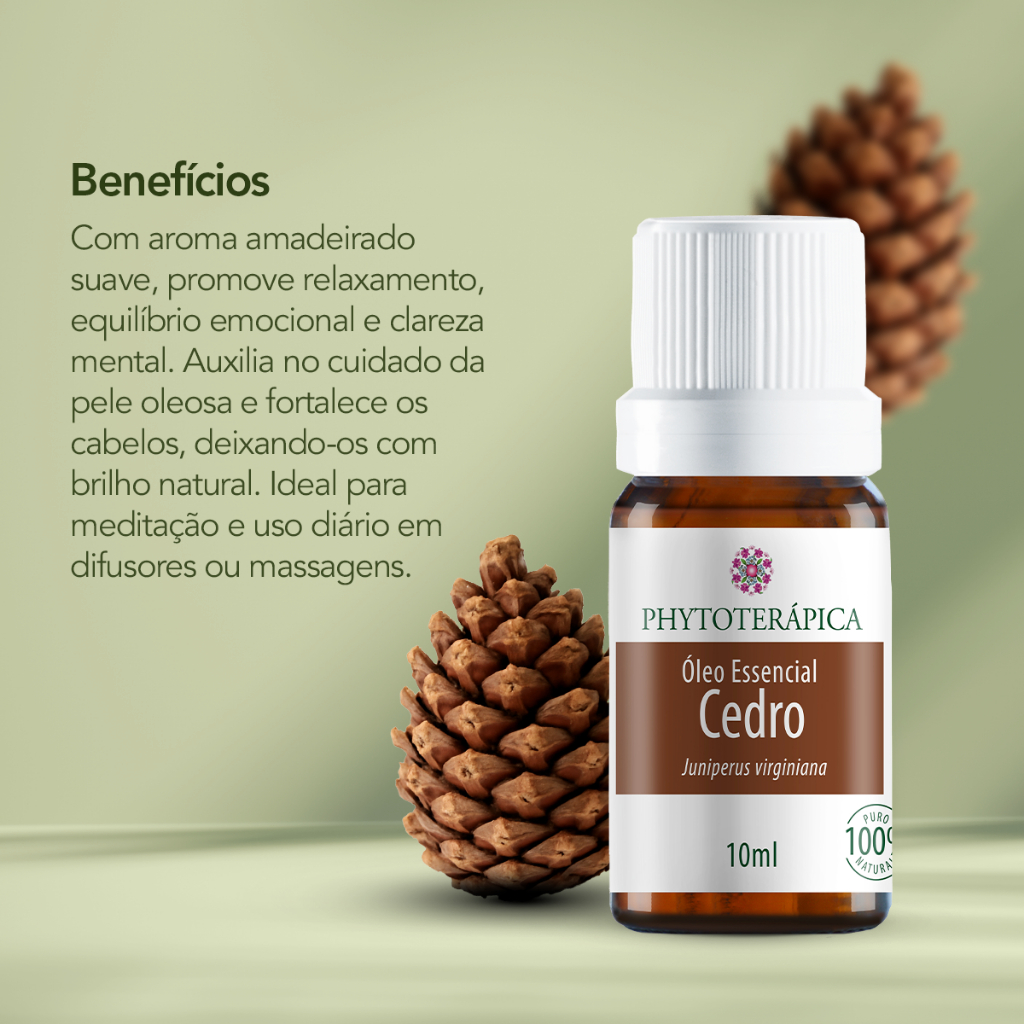 Phytoterápica Óleo Essencial Cedro 10ml – Natural – Aromaterapia, Equilíbrio e Fortalecimento