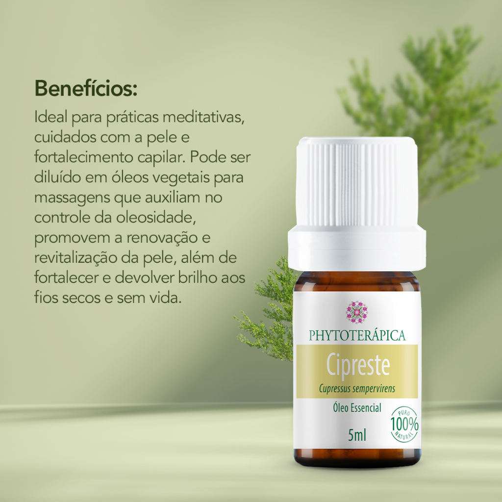 Renovação e leveza com o afresco da natureza. O Óleo Essencial de Cipreste da Phytoterápica é extraído da planta Cupressus sempervirens , conhecido por seu aroma amadeirado e propriedades revigorantes. Utilizado na aromaterapia para estimular a circulação, aliviar tensões e trazer equilíbrio emocional, é um aliado natural para corpo e mente. Sua fórmula é 100% pura, natural, vegana e livre de ingredientes sintéticos. Benefícios: • Estimula a circulação sanguínea e auxilia na redução de surtos e retenção de líquidos. • Ação adstringente e tonificante, ideal para cuidados com a pele oleosa. • Suporte emocional em momentos de transição, perdas ou mudanças. • Aroma fresco e amadeirado com efeito revitalizante e equilibrante. • Fórmula pura, vegana e livre de conservantes artificiais. Informações Técnicas: • Volume: 5ml. • Textura: líquida e oleosa. • Uso: aromaterapia, massagens, cuidados corporais. • Composição: óleo essencial 100% puro de Cupressus sempervirens . • Método de remoção: destilação por retenção de vapor das folhas e galhos. • Nota olfativa: média. • Classificação de fragrâncias: amadeirada, fresca, levemente resinosa. • Família: Cupressaceae. • Vegano e não testado em animais. • Livre de parabenos, fragrâncias e corantes artificiais. • Marca: Phytoterápica. Ideal para: • Pessoas que sofrem com má circulação, retenção de líquidos ou pernas cansadas. • Aromaterapia em momentos de luto, mudanças ou crises emocionais. • Cuidados com pele oleosa ou com tendência a varizes. • Criação de ambientes que promovam equilíbrio e bem-estar físico e mental. Sobre a Phytoterápica: Referência em cosméticos naturais e aromaterapia, a Phytoterápica desenvolve produtos com ingredientes puros, veganos e sustentáveis. Cada fórmula é pensada para promover bem-estar, respeitando seu corpo e o meio ambiente.