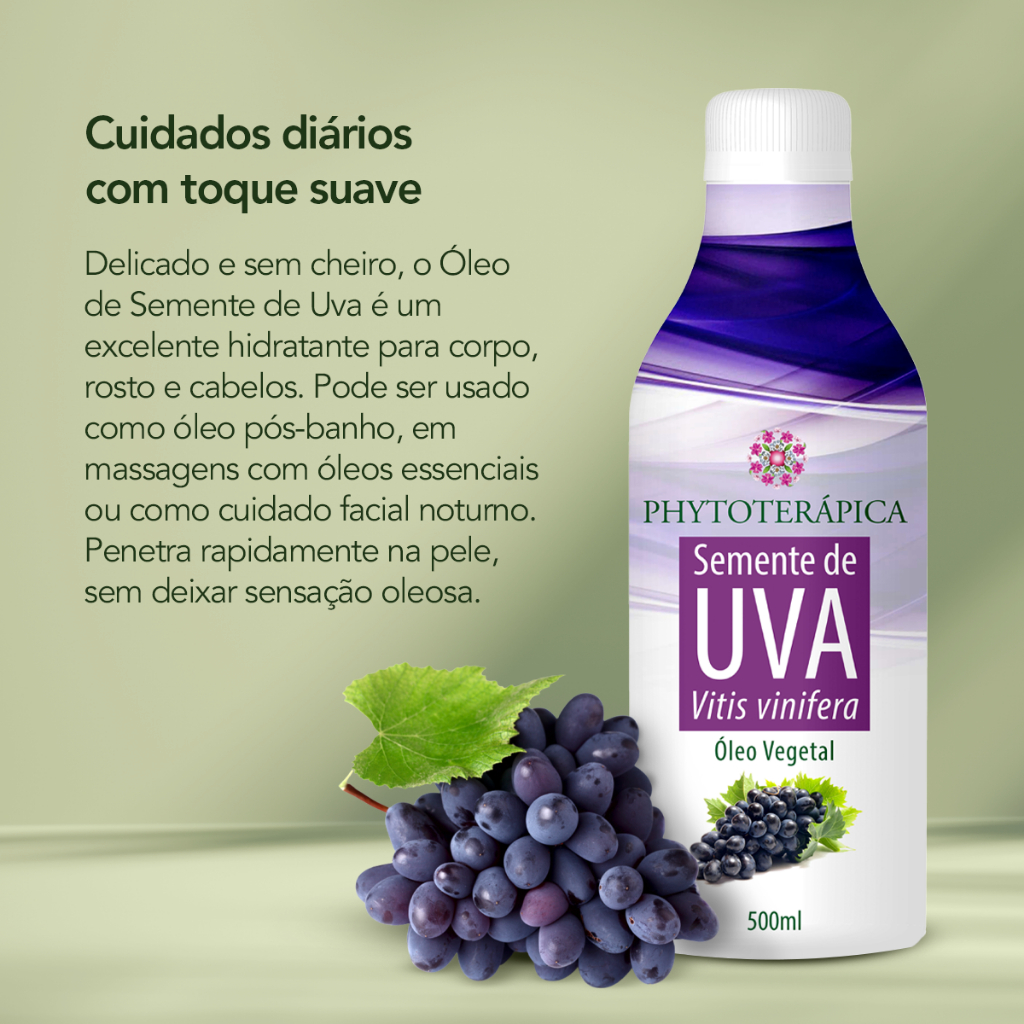 Phytoterápica Óleo Semente de Uva 500ml - Nutre, Suaviza e Previne o Envelhecimento