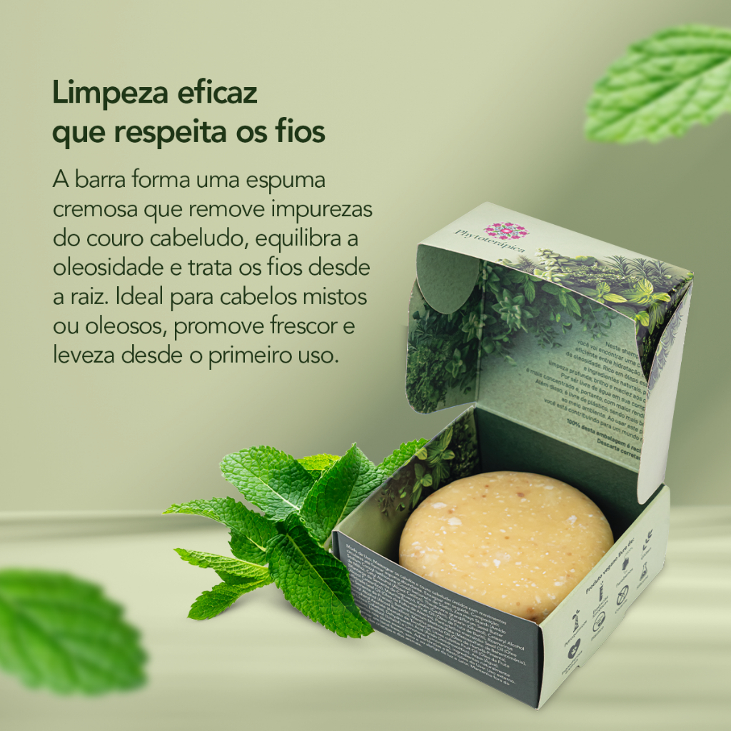 Phytoterápica Shampoo em Barra Vegano Alecrim, Hortelã e Litsea 70g – Limpeza e Frescor Natural