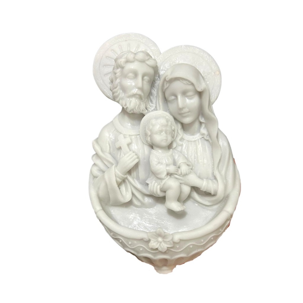 Pia Água Benta Sagrada Família Auréola Parede Resina 17cm Decoração