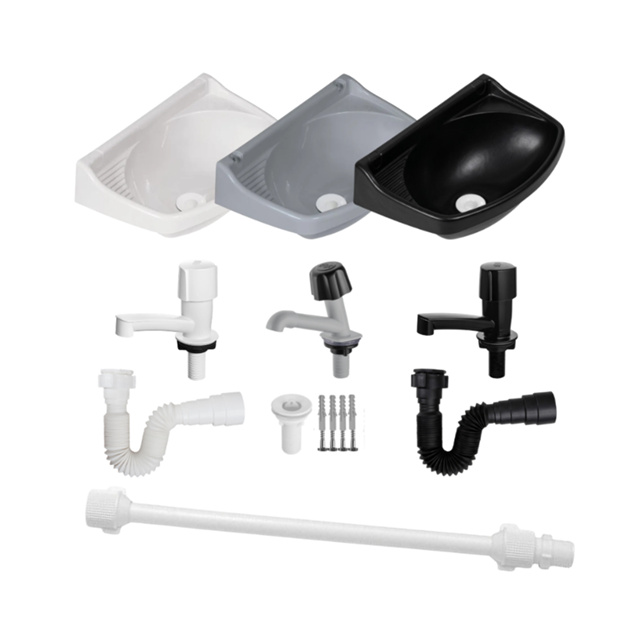 Pia de Banheiro Pia Lavatório com Sifão e Kit de Instalação e Ralo Cuba Plástico Com Torneira