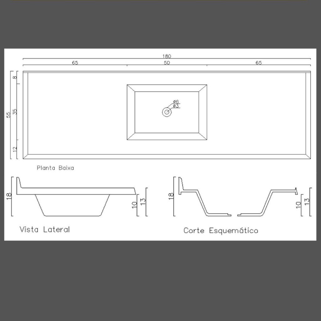Pia Sintética para Cozinha 180cm X 55cm Preto