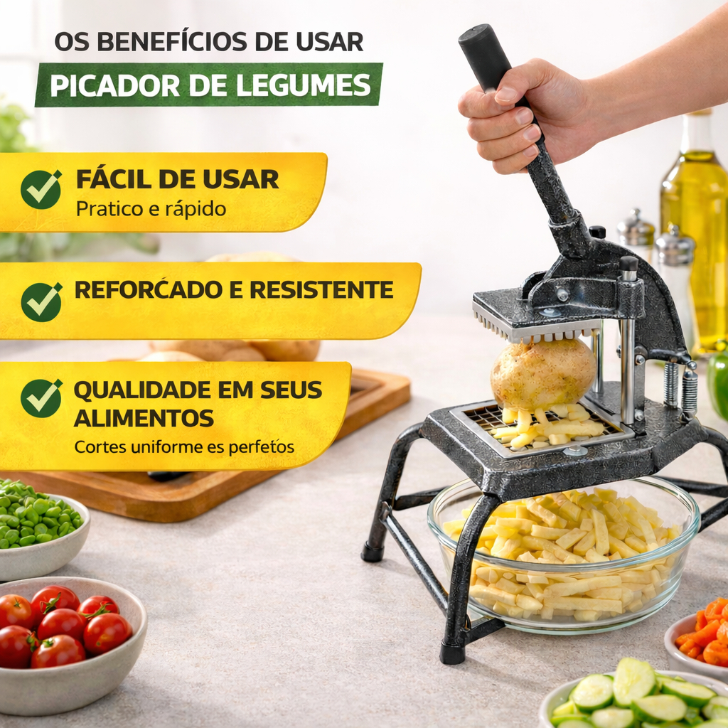 Picador Cortador Fatiador de Legumes Profissional Reforçado Pequeno Batata Palito Legumes Frutas Bares
