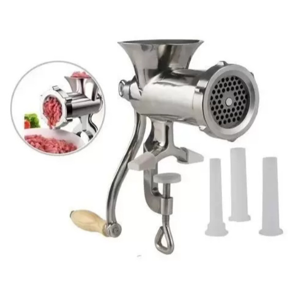 Construção sólida em alumínio resistente com fixação forte por morsa. Lâmina de aço inoxidável e disco de 12mm em ferro fundido estanhado oferecem corte preciso, moagem uniforme e longa durabilidade. Kit versátil: moa carnes para hambúrgueres/almôndegas, produza embutidos com 3 funis (linguiça/salsicha/salame) e crie biscoitos com o modelador. Também ideal para purês de legumes e frutas. Design 100% desmontável para limpeza profunda após cada uso. Dimensões compactas (27x11x26.5cm), peso leve (2.2kg) e acabamento em spray com punho de madeira. Ferramenta essencial para chefs domésticos ou pequenos produtores que buscam frescor, economia e resultados profissionais na cozinha.