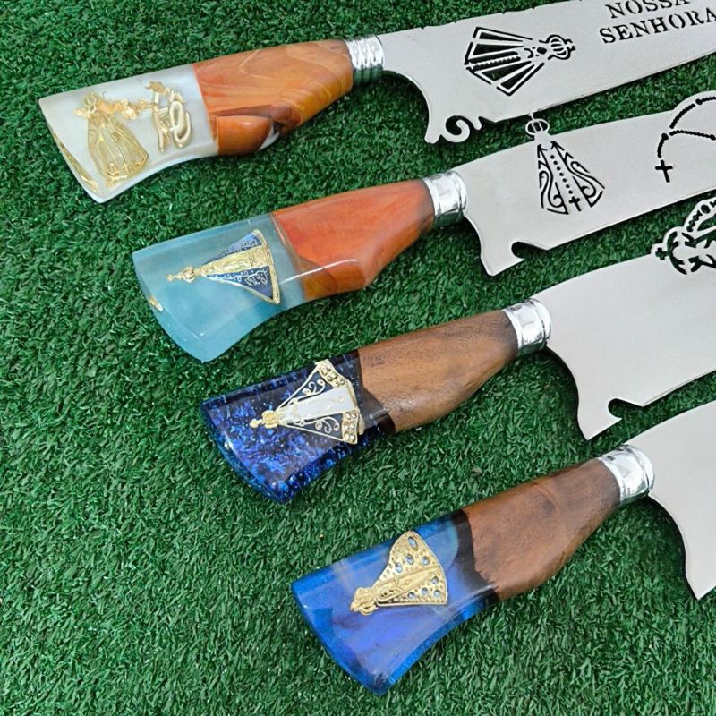 Função do produto: Faca especial para todos tipos de cortes, carnes, churrascos, cozinha, legumes, verduras, frutas uso em geral. • Medidas do produto: Tamanho 10 Pol Cabo 13cm, Lâmina 25cm, Largura 5,5cm, Espessura 3mm, Peso 300g • Material: Aço Cirúrgico Inox 420c, Cabos aleatórios madeira e acrílico, Bainha em Couro legitimo • Modelo: Faca tradicional Picanheira • Cuidados com o uso: Evitar atritos direto com o fio em espetos, pedras, marmores e vidros.