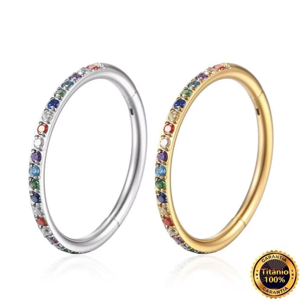 Piercing argola aberta elegante de titânio G23 sintético com zircônia para nariz e orelha, cartilagem, hélice, 18K banha