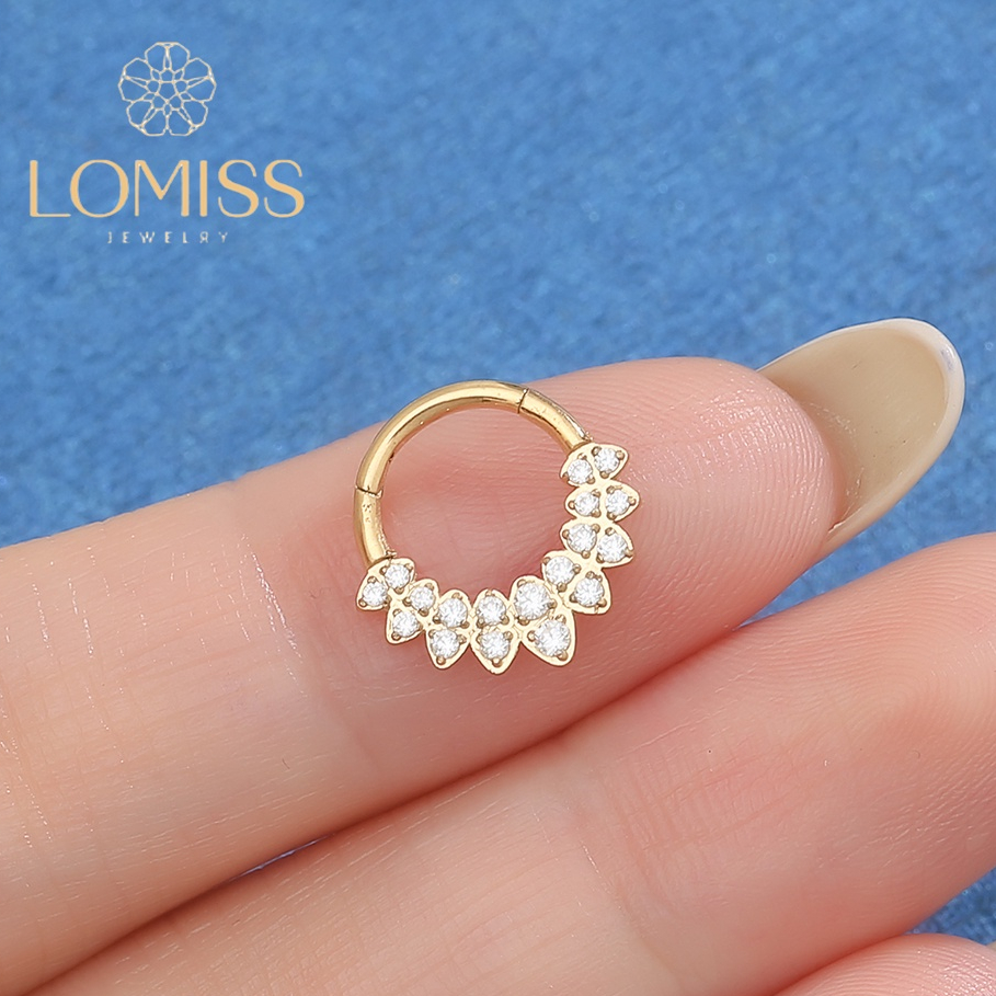 Piercing Argola Clik Aço Cirúrgico PVD Detalhado Zircônia Cravejada《Lomiss semijoias》