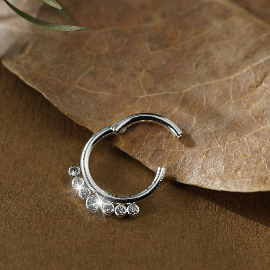 Piercing Argola Segmento Articulado Prata 925 Zirconia 7 Pedras - Nariz e Orelha Helix Septo Rook | Bijuteria Prata