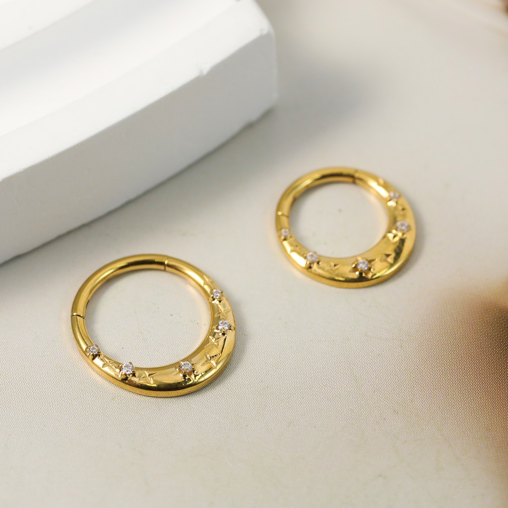 Piercing Argola Titânio Helix Septril Rook Conch Nariz Segmento Articulado Zircônia Detalhes Estrelas