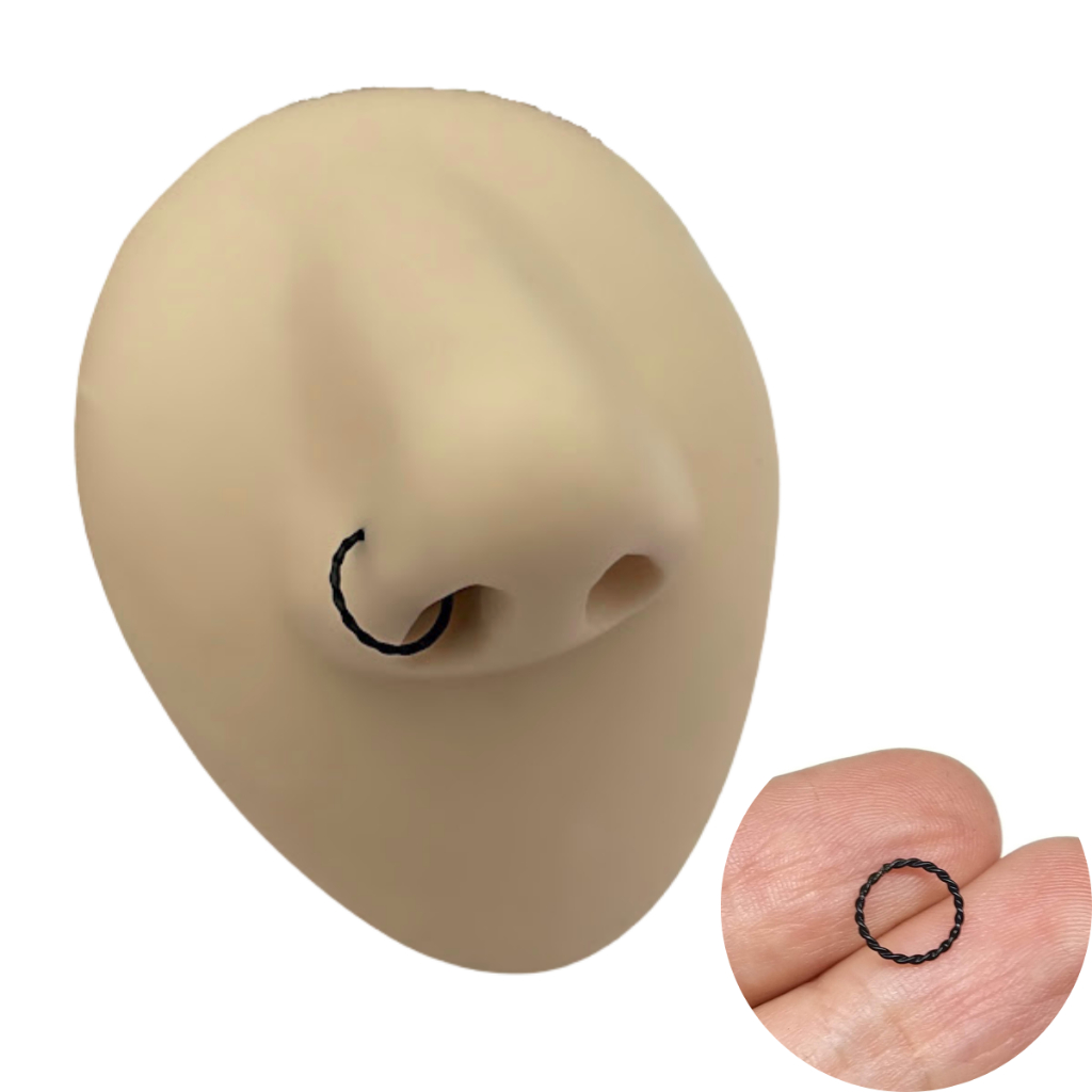 Piercing Argola Nariz Trançada Fabricada em aço 316L com 0,6mm de espessura e 7mm de diâmetro, fina e delicada.