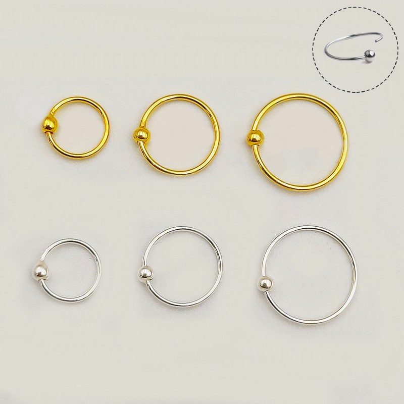 Piercing Argolinha Orelha Nariz Fininha Bolinha Prata 925