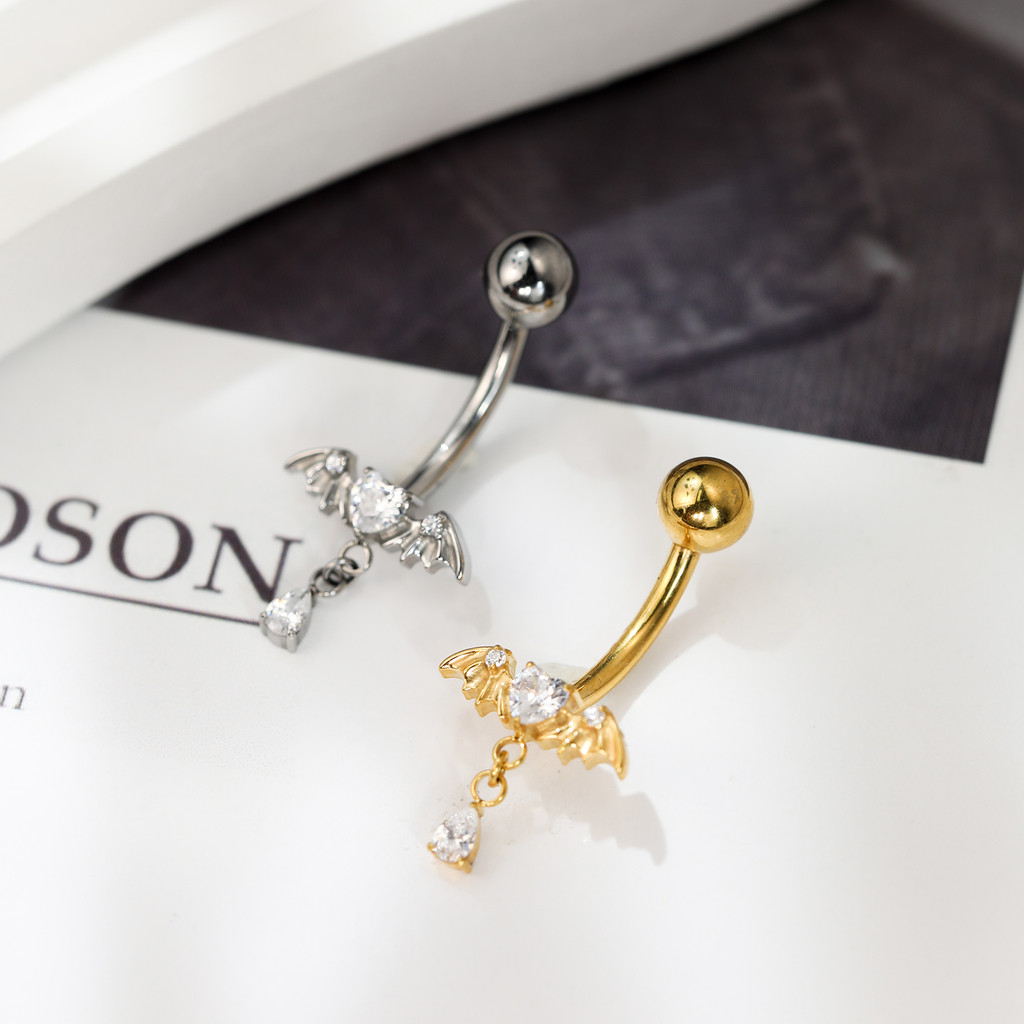 Piercing Banana Titânio Umbigo Coração Zircônia Com Asas De Morcego