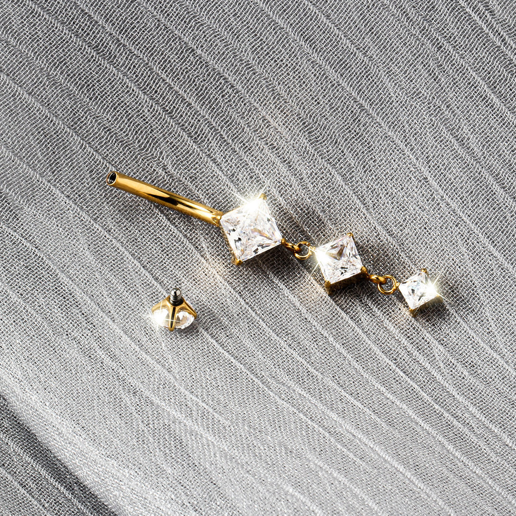 Piercing Banana Umbigo Com Pingente 3 Zircônias Titânio 1,6x10 mm