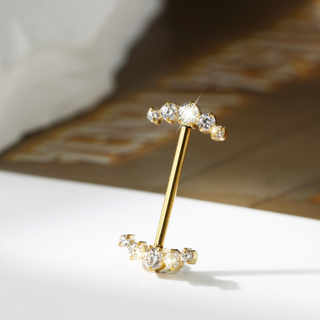 Piercing Barbel Mamilo Hélix Titânio Push Pin Indiano Zircônia Cravejada