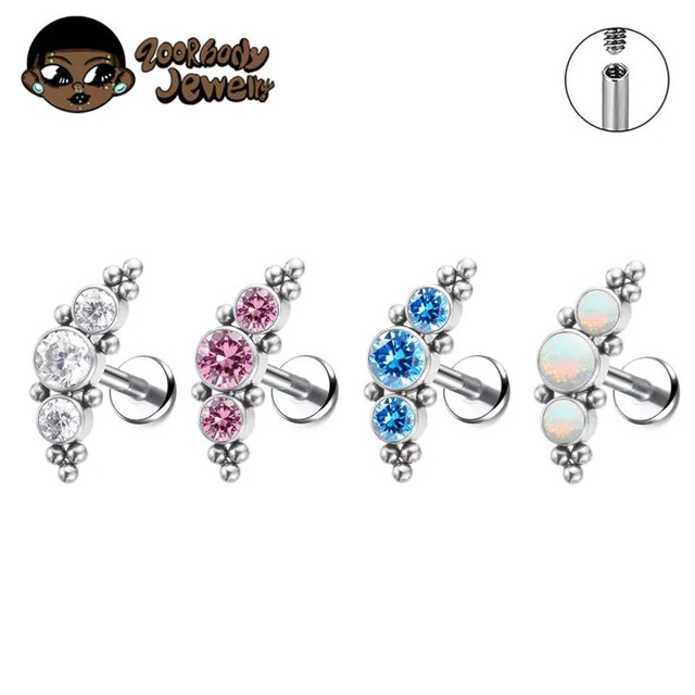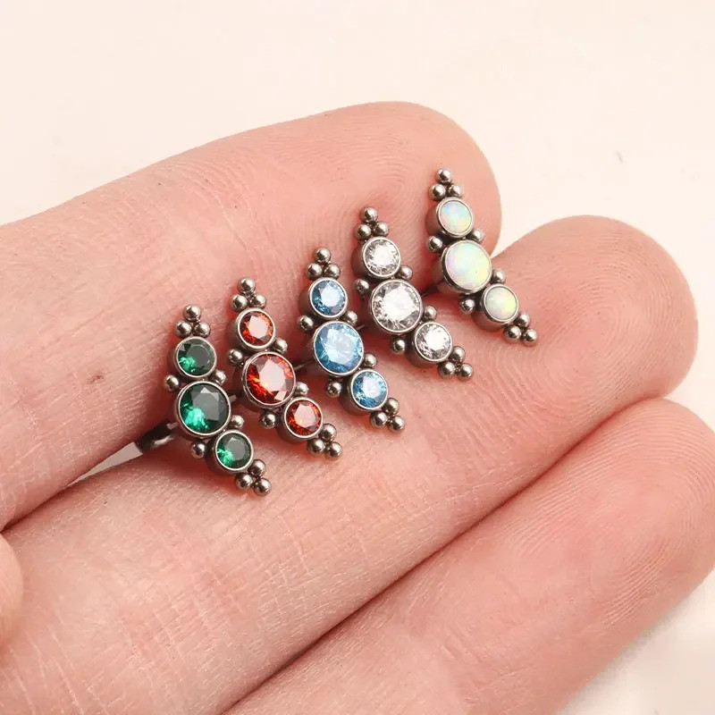 Piercing Cluster de Titânio 3 Pedras para Conch Helix Flat Titânio de Grau de Implante
